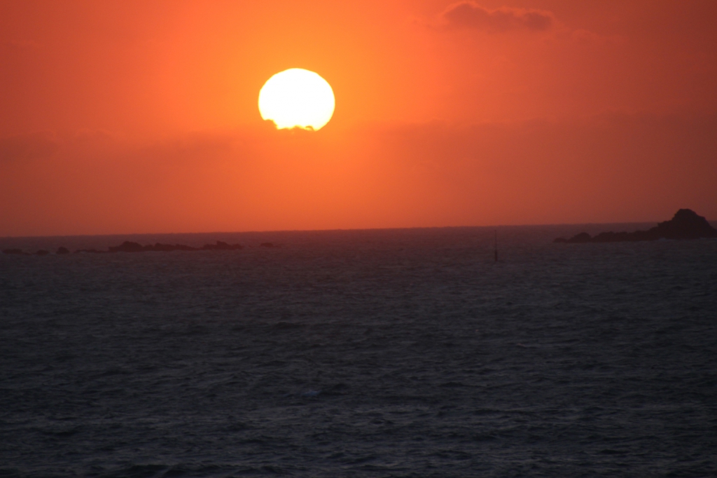 De problemen met mijn kamer gisteren hebben me nog een mooie surplus opgeleverd. Als je uit het raam kijkt en je krijgt een mooie zonsondergang te zien dan mogen er altijd problemen opduiken. Die problemen had ik vandaag in het Ommaroo hotel in Jersey trouwens niet. Het uitzicht is er dan ook naar … ik kijk uit op de parking.