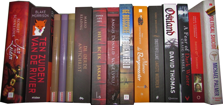 Hoewel de nadruk ook deze keer weer ligt op (historische) thrillers heb ik 3 biografieën en 3 non-fictie boeken meegebracht. Drie van de overige 9 thrillers zijn Engels.