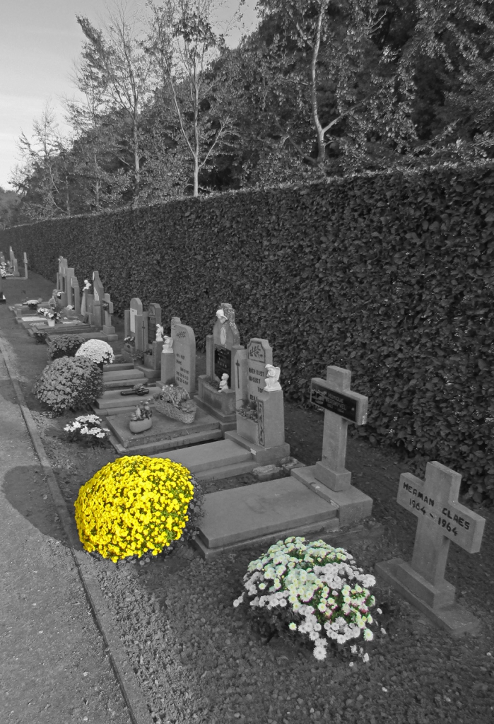 Na de middag heb ik dan nog een korte wandeling naar het kerkhof gemaakt met mijn ouders. Altijd mooi zo rond Allerheiligen en Allerzielen. Het bleek trouwens wel een zwaardere opdracht dan verwacht. Sommige paden op het kerkhof waren behoorlijk mul en dan is het niet simpel om een man in een rolstoel voort te duwen.