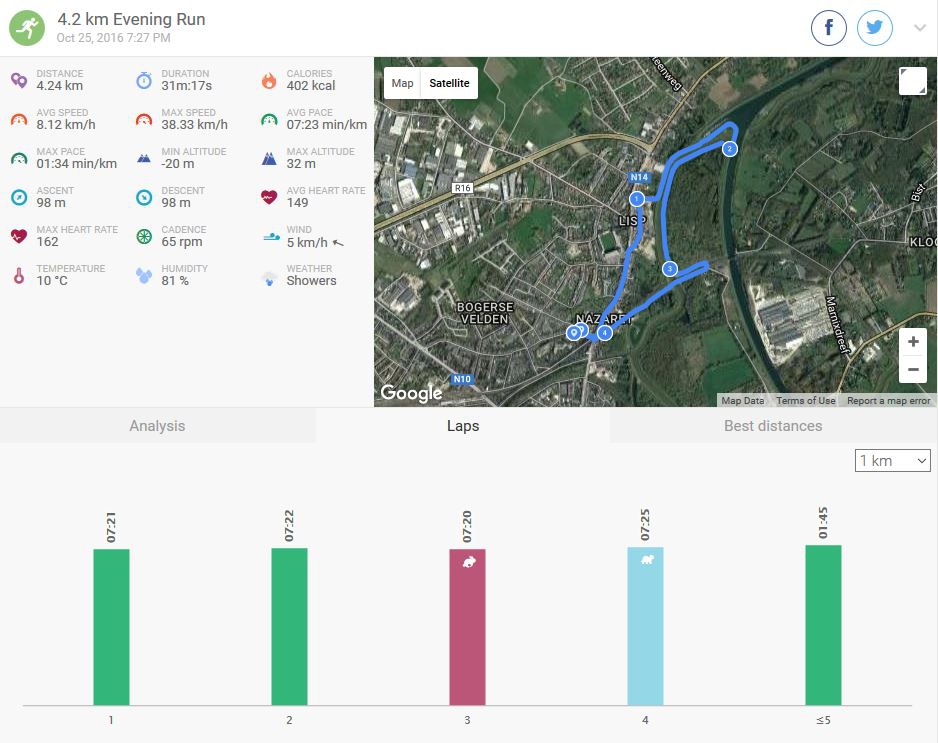 Net als vorige donderdag ging het trouwens behoorlijk vlotjes. 30 minuten lopen waren goed voor 4,41 km.