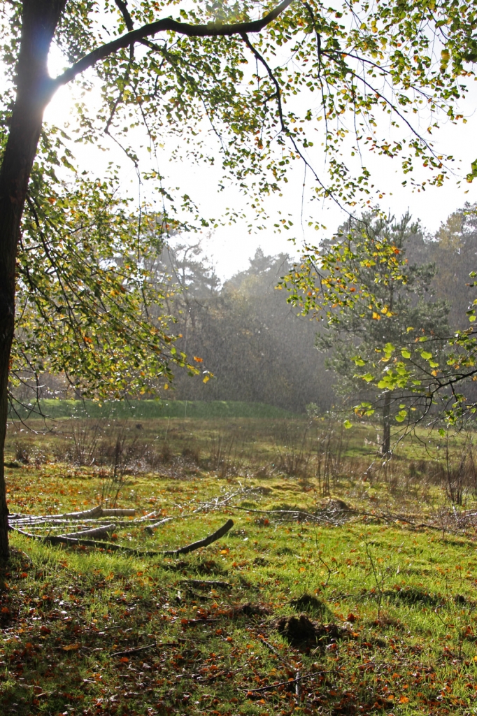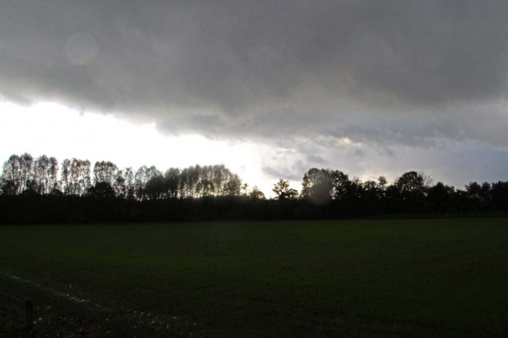 We zitten in het “putje” van de Herfst maar deze namiddag leek het wel of we in April zaten. Zonnig warm, kletsnatte regen,koude hagel, opnieuw zonnig, weer zeiknatte regen met wat hagel en even later moest de zonnecrème weer worden bovengehaald.
