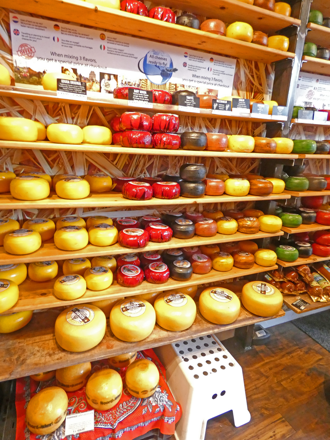 Uiteraard zijn we na onze wandeling nog wat kaas en siroopwafels gaan kopen, twee specialiteiten van de stad. Voor de andere specialiteiten zoals kaarsen en kleipijpen hadden we minder interesse 😉.