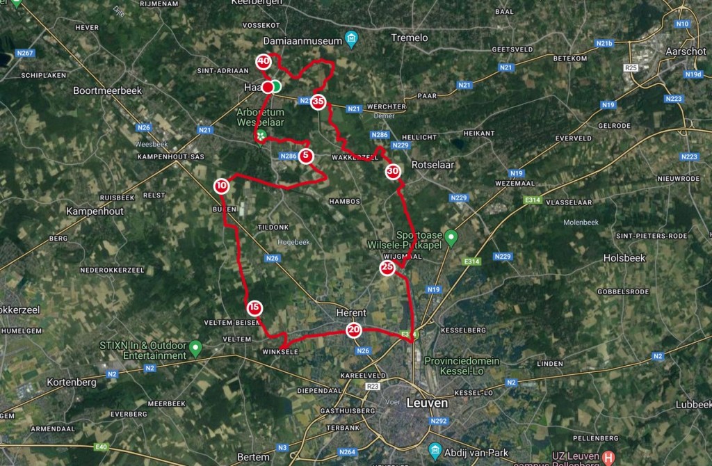 Ook vandaag was er tijd voor ontspanning. De fietsen gingen op de fietsendrager om een kleine 20km van Peulis te gaan fietsen, meer bepaald naar Rumst. We hebben een Lannoo/knooppunter-gist “Fietsen langs het water” en nummer 04 uit dat boek stuurt je op verkenning door de Rupelregio.